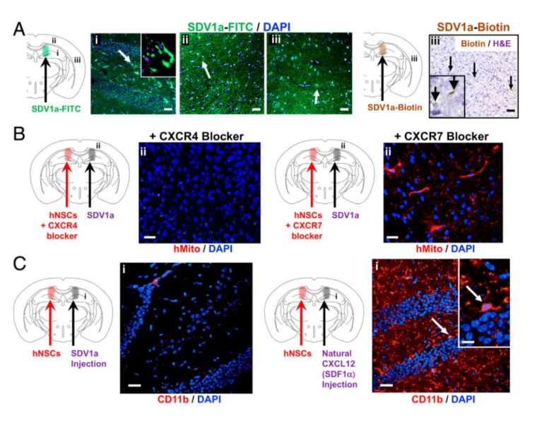 And this ingenious design means that it may be the nemesis of neurodegenerative diseases: in the brain, some inflammatory responses may attack other nerve cells, which may lead to some other diseases. And SDV1a drugs have the potential to solve this dilemma. This was also demonstrated in experiments in mice: In the adult mouse cortex, the SDV1a drug was better able to guide stem cells to their own site.