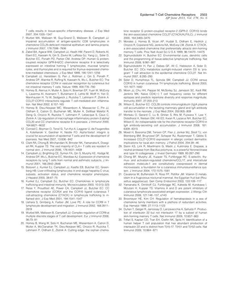 Chemokine Receptor Requirements for Epidermal T-Cell Trafficking