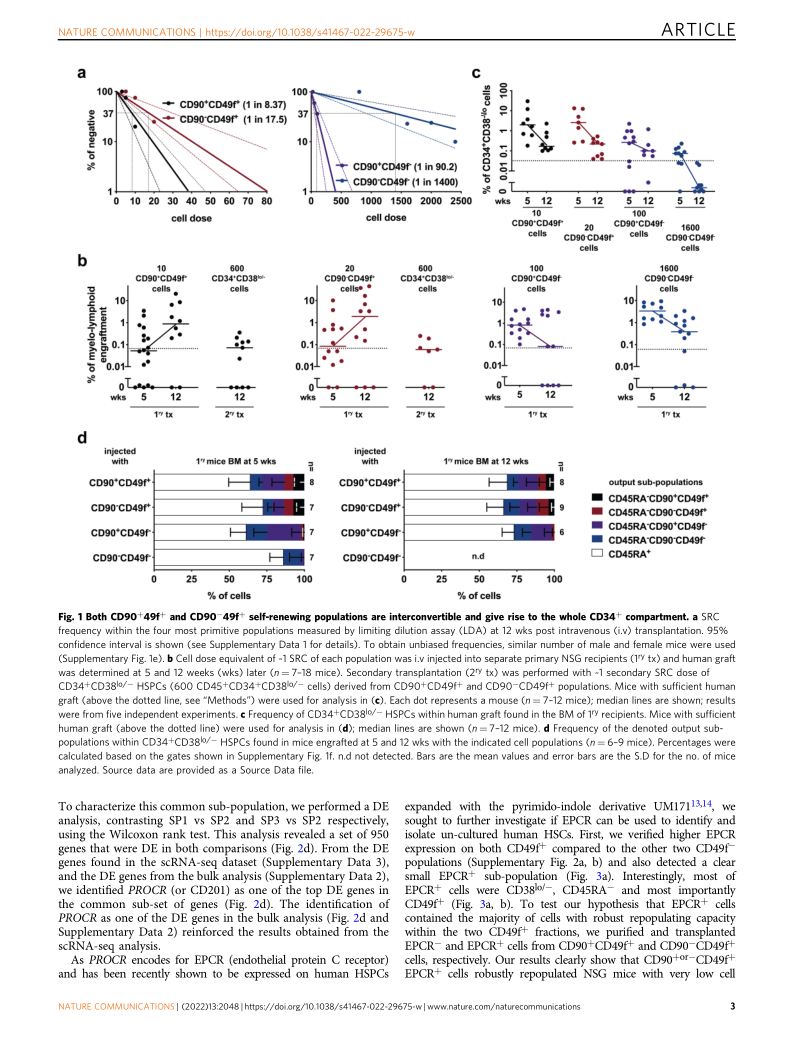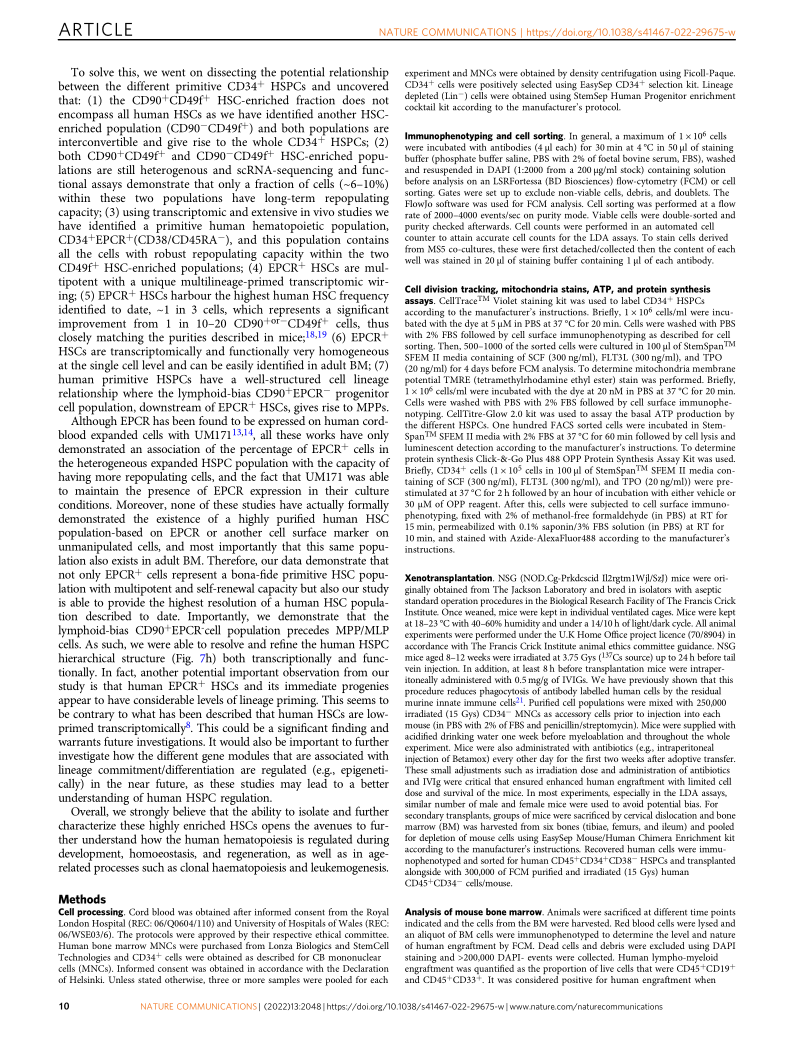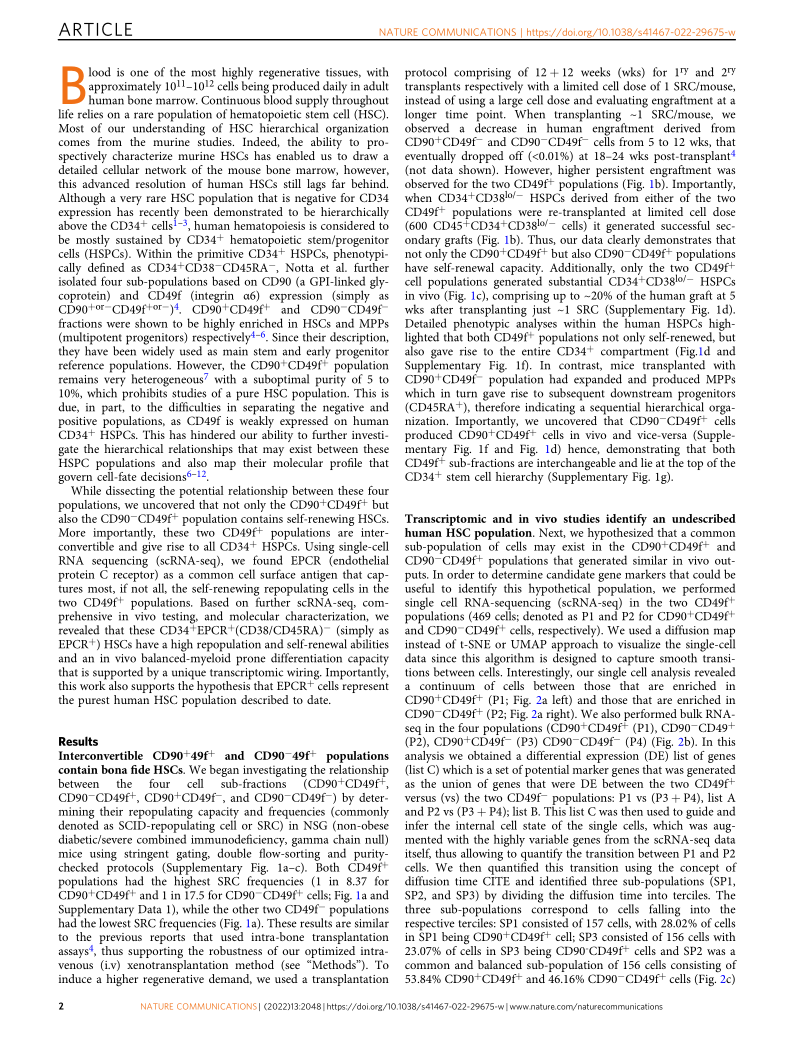 Single cell analyses identify a highly regenerative and homogenous human CD34+hematopoietic stem cell population