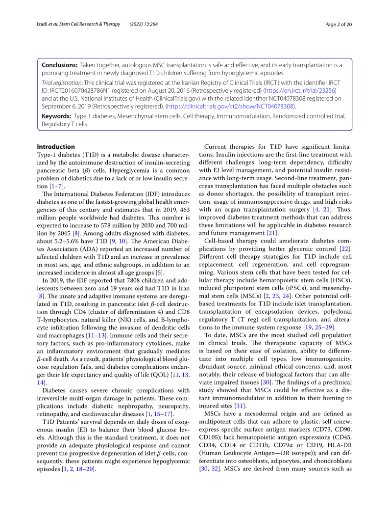 Mesenchymal stem cell transplantation in newly diagnosed type-1 diabetes patients: a phase I/II randomized placebo-controlled clinical trial