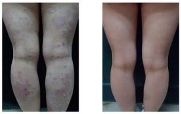 The skin symptoms of some patients before and after treatment in this study were compared: