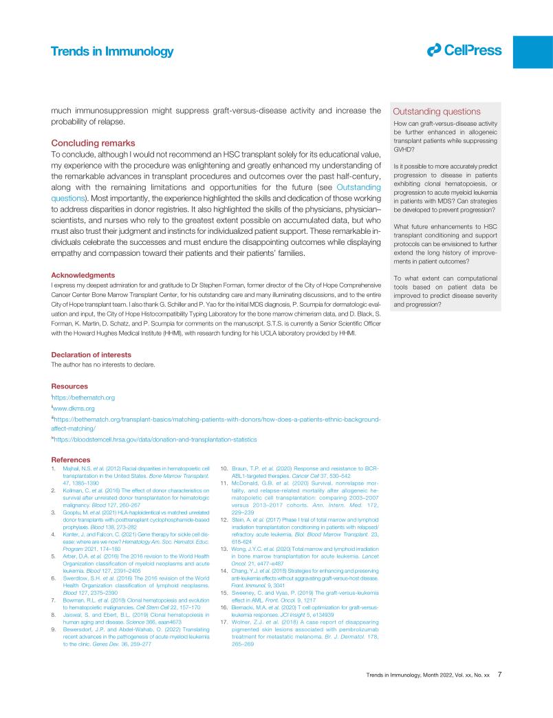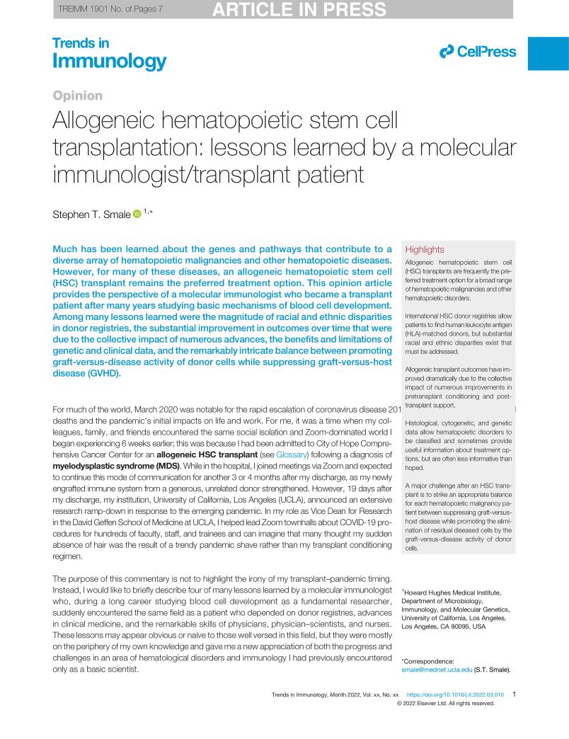 Allogeneic hematopoietic stem cell transplantation:lessons learned by a molecular immunologist/transplant patient