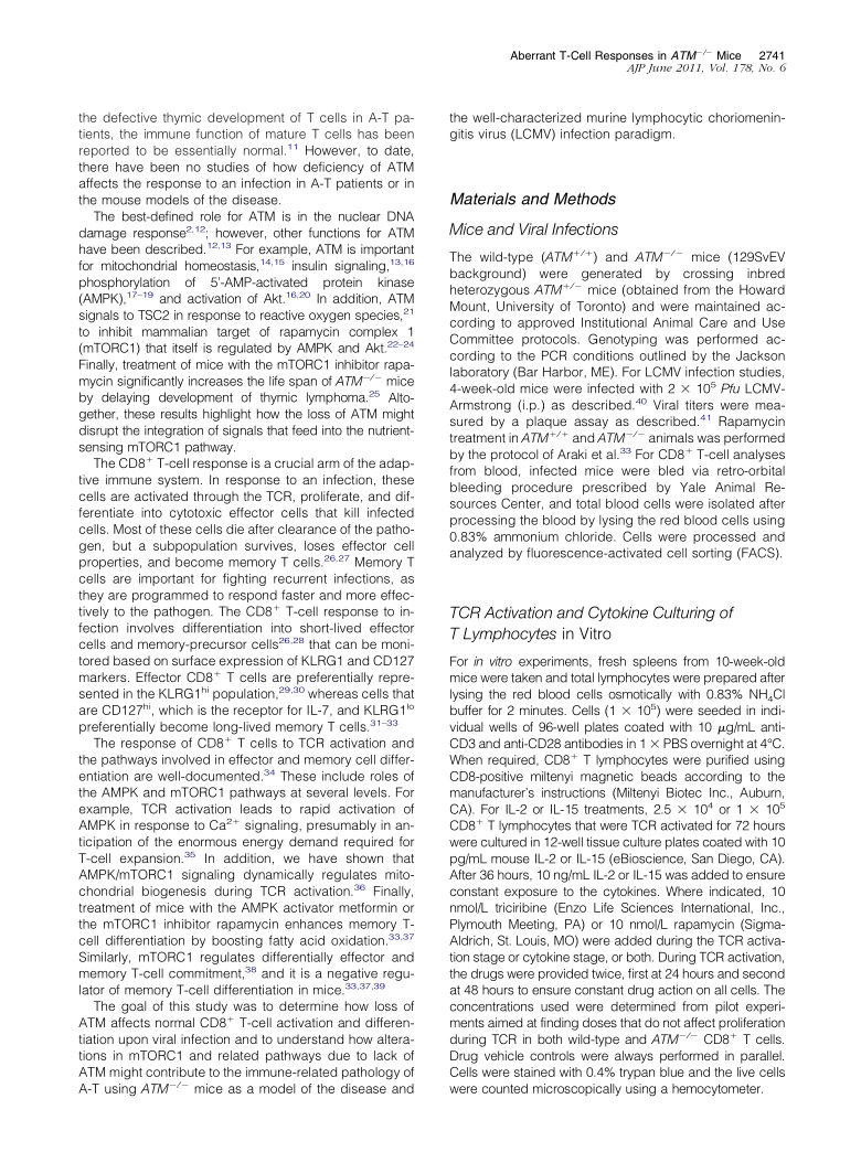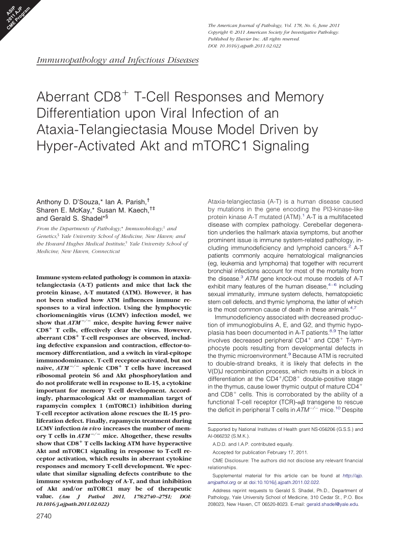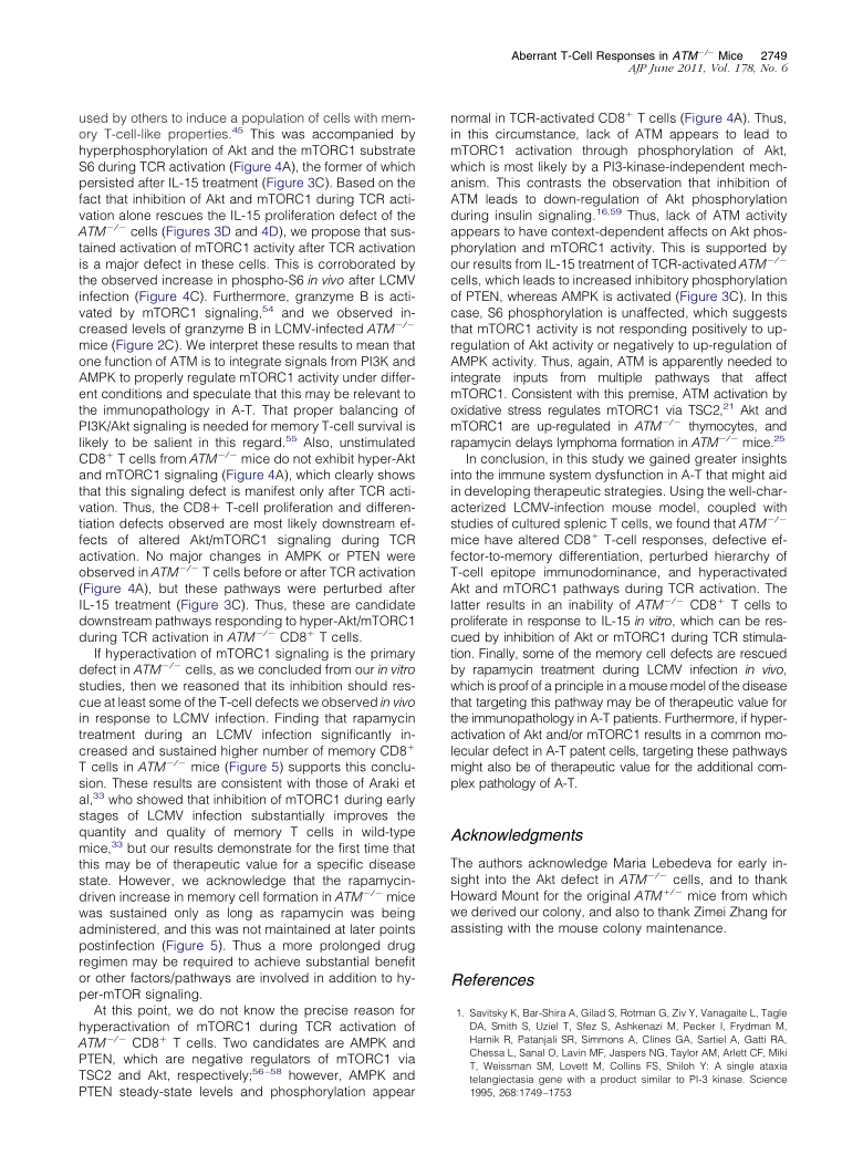 Aberrant CD8 + T-Cell Responses and Memory Differentiation upon Viral Infection of an Ataxia-Telangiectasia Mouse Model Driven by Hyper-Activated Akt and mTORC1 Signaling