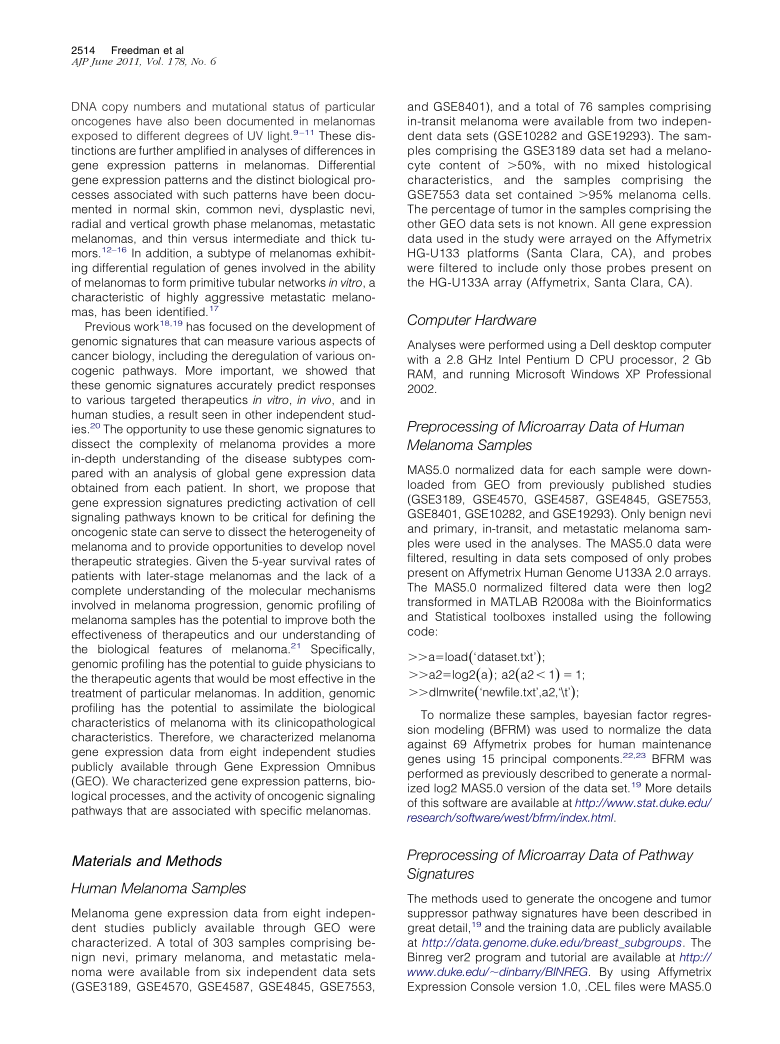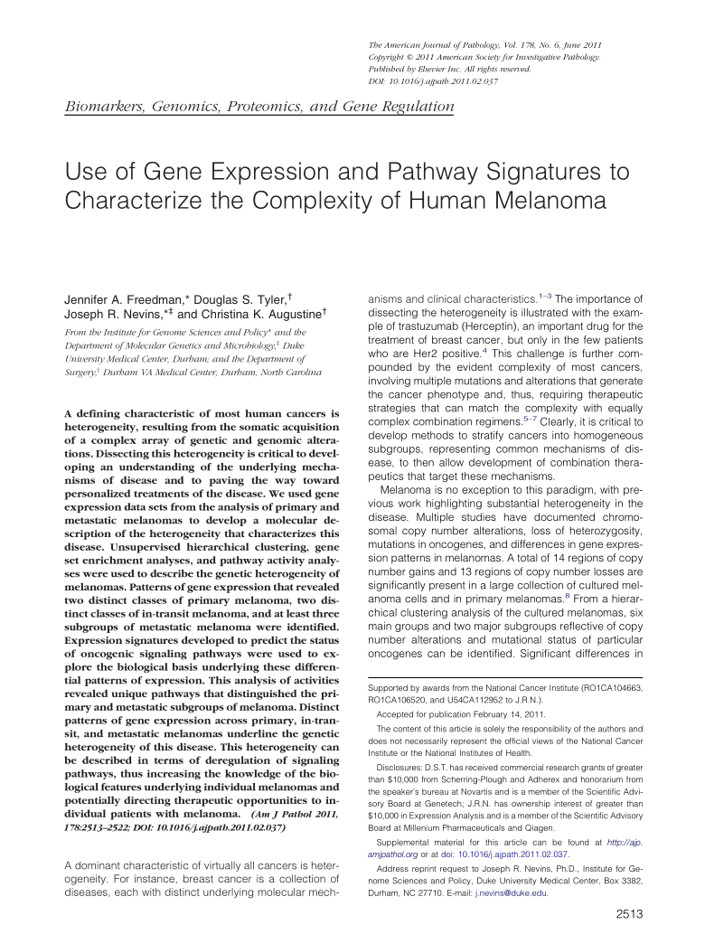 Use of Gene Expression and Pathway Signatures to Characterize the Complexity of Human Melanoma