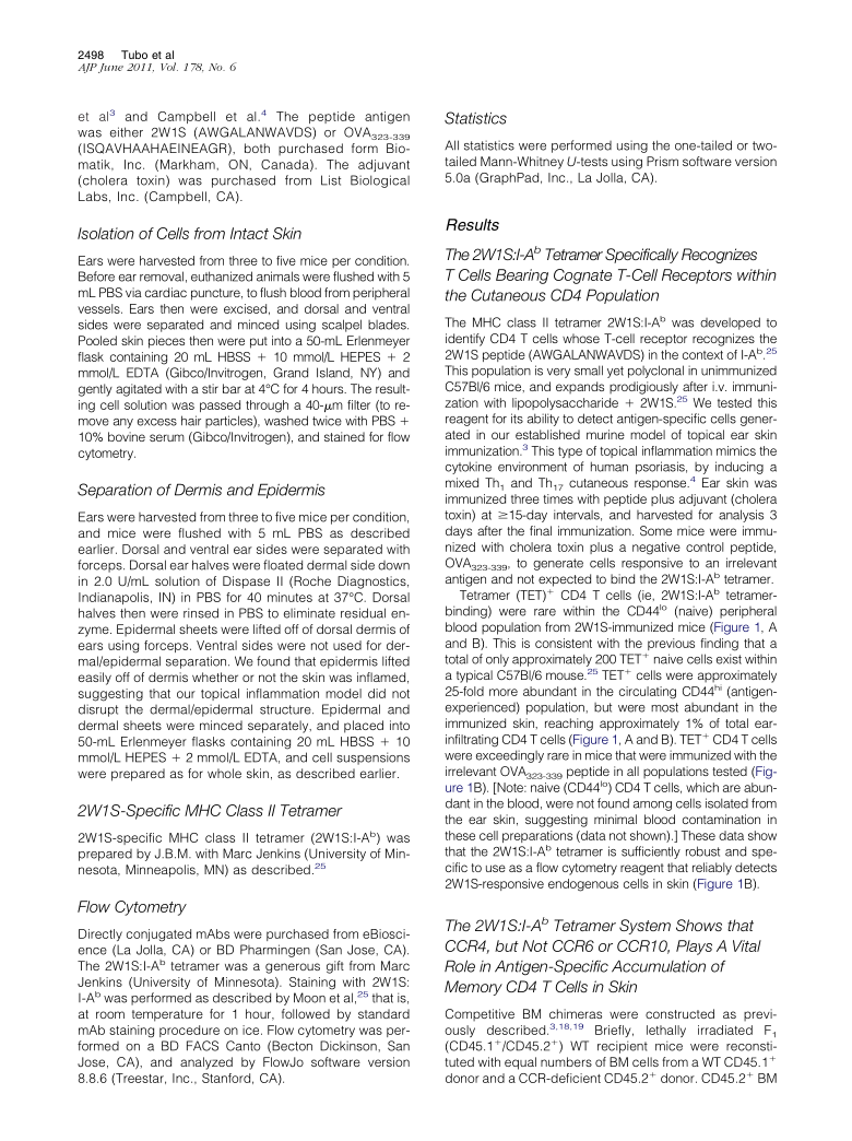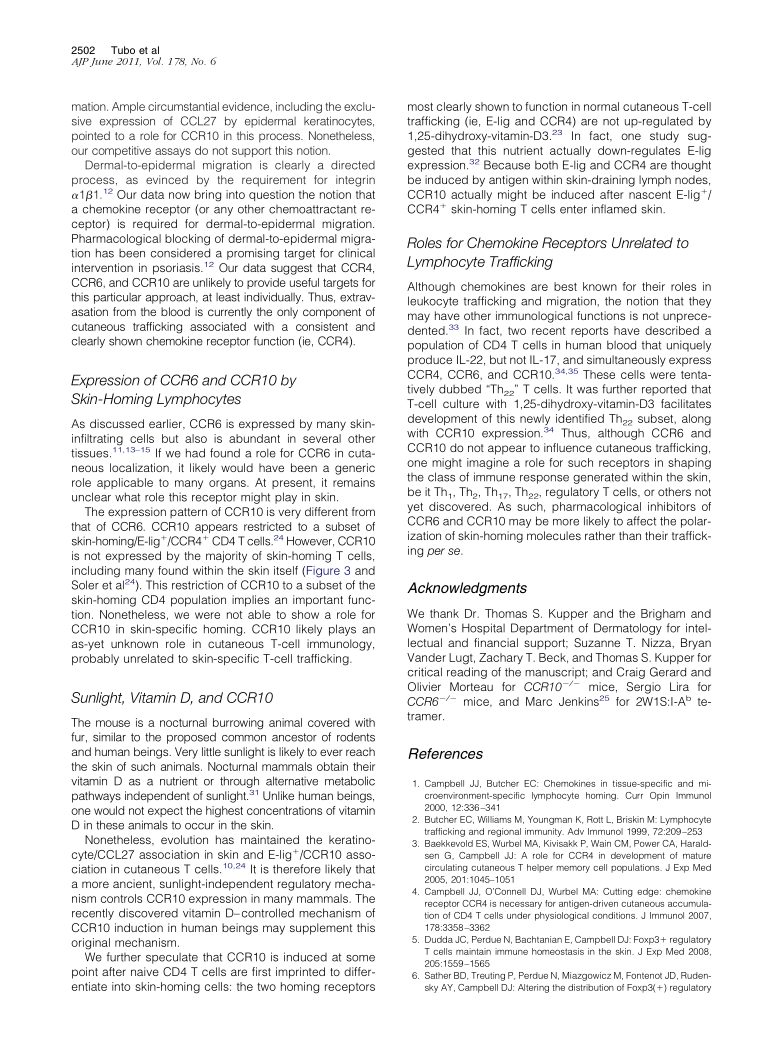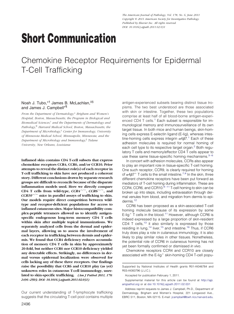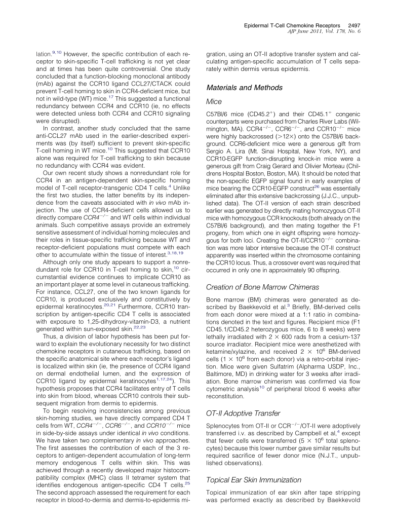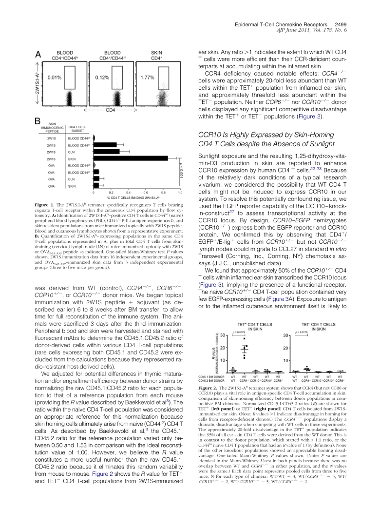 Chemokine Receptor Requirements for Epidermal T-Cell Trafficking