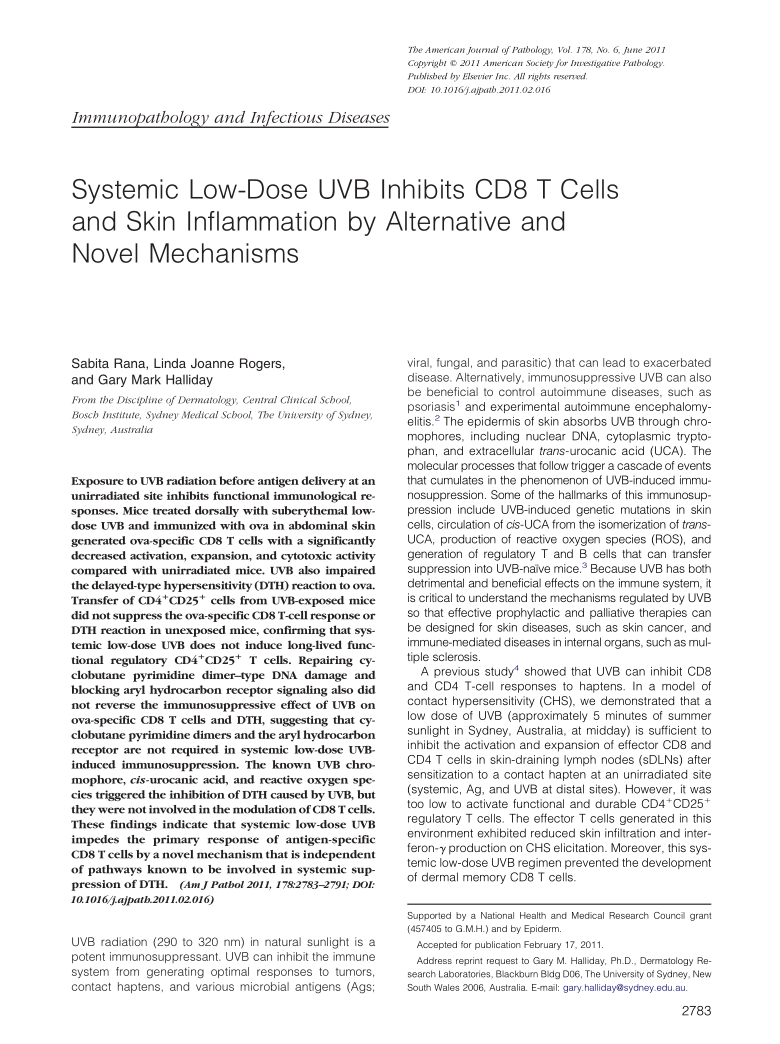 Systemic Low-Dose UVB Inhibits CD8 T Cells and Skin Inflammation by Alternative and Novel Mechanisms