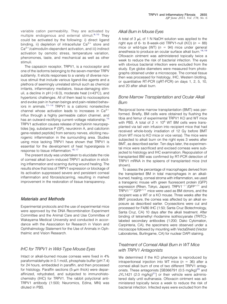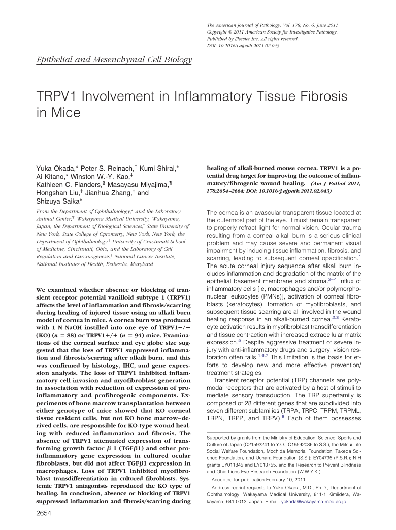 TRPV1 Involvement in Inflammatory Tissue Fibrosis in Mice