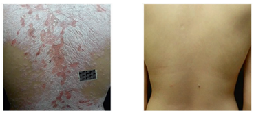 The skin symptoms of some patients before and after treatment in this study were compared: